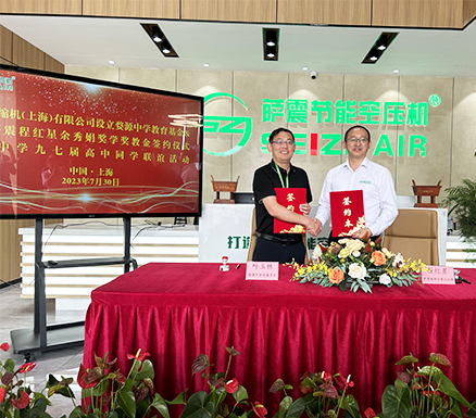 程總表示此次設立“薩震壓縮機(上海)有限公司程紅星余秀娟獎學、獎教金”就是要把這份愛傳遞下去,幫助更多學弟學妹種下夢想與希望的種子,旨在進一步促進婺源中學人才的培養,激勵師生奮發前行,期望更多優秀老師能在一線培養更多優秀的人才,為國家做出更大的成就。